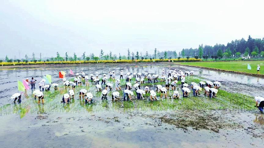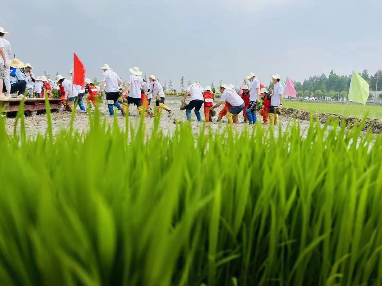 圍繞“插秧”農事活動,現(xiàn)場還開展了拋秧苗等趣味田間運動項目。