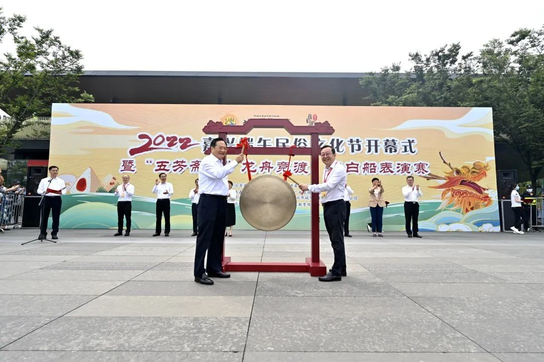 市委書記張兵,省文旅廳黨組成員、副廳長刁玉泉共同為2022年嘉興端午民俗文化節(jié)鳴鑼開幕!