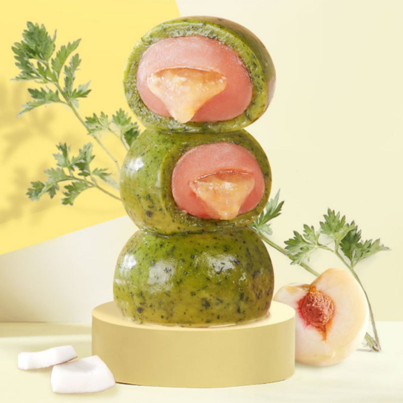 酸甜山楂包裹白桃果醬,入口層次豐富,軟滑的糯皮帶著淡淡艾草的清香,酸甜山楂與香甜果醬在口中交織迸發(fā),春天的味道躍然于舌尖。