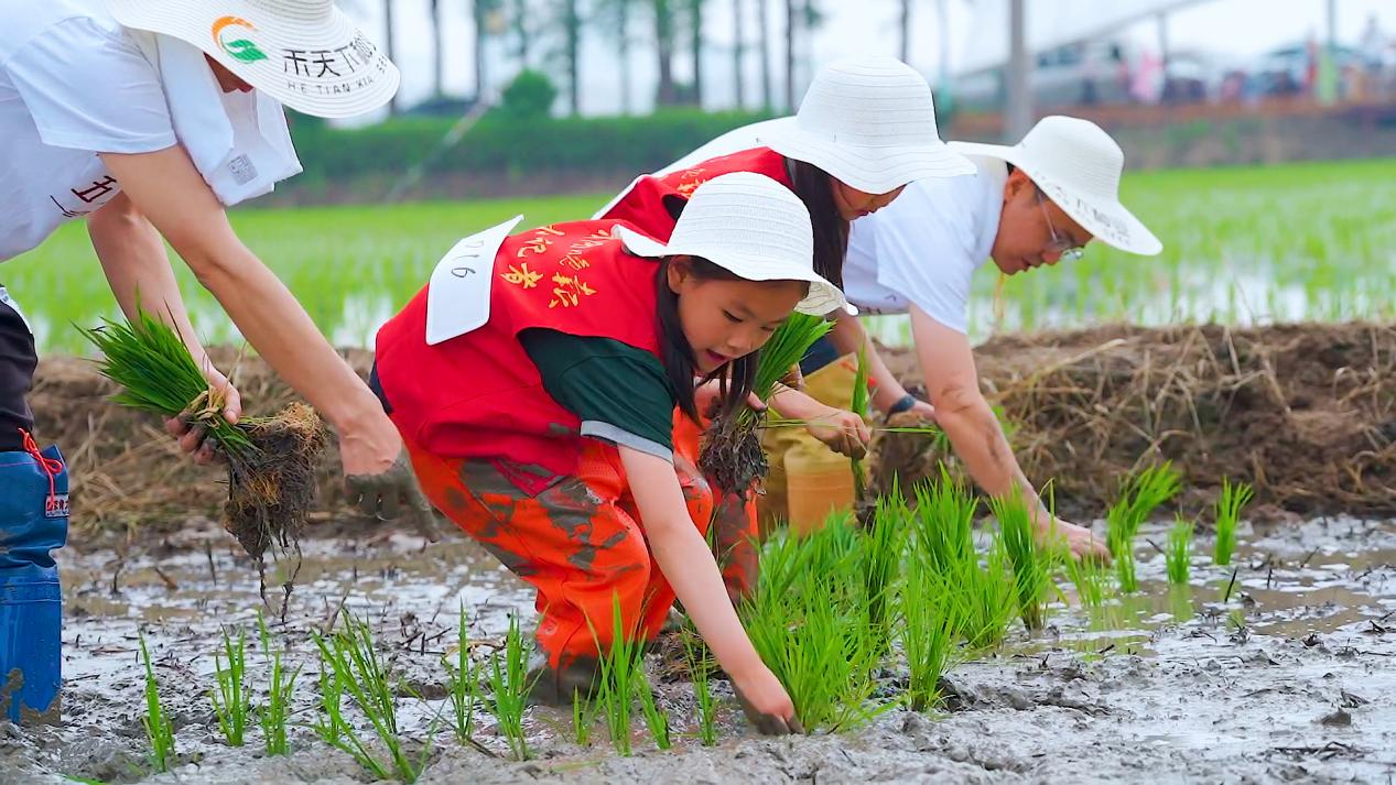 圍繞“插秧”農事活動,現(xiàn)場還開展了拋秧苗等趣味田間運動項目。